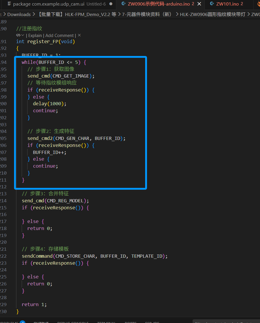 zw101手动注册指纹时候,如何判断手指离开,手指离开后再进入下次获取图像的循环示例代码看不到这个流程,是自动的吗image.png